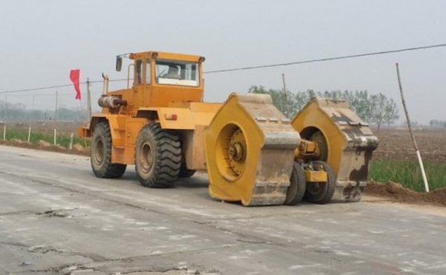 再有就是采用換填的方式,即將舊路面打碎分離方便裝運的碎塊后,將其運走,重新鋪筑路面(如下圖所示)。